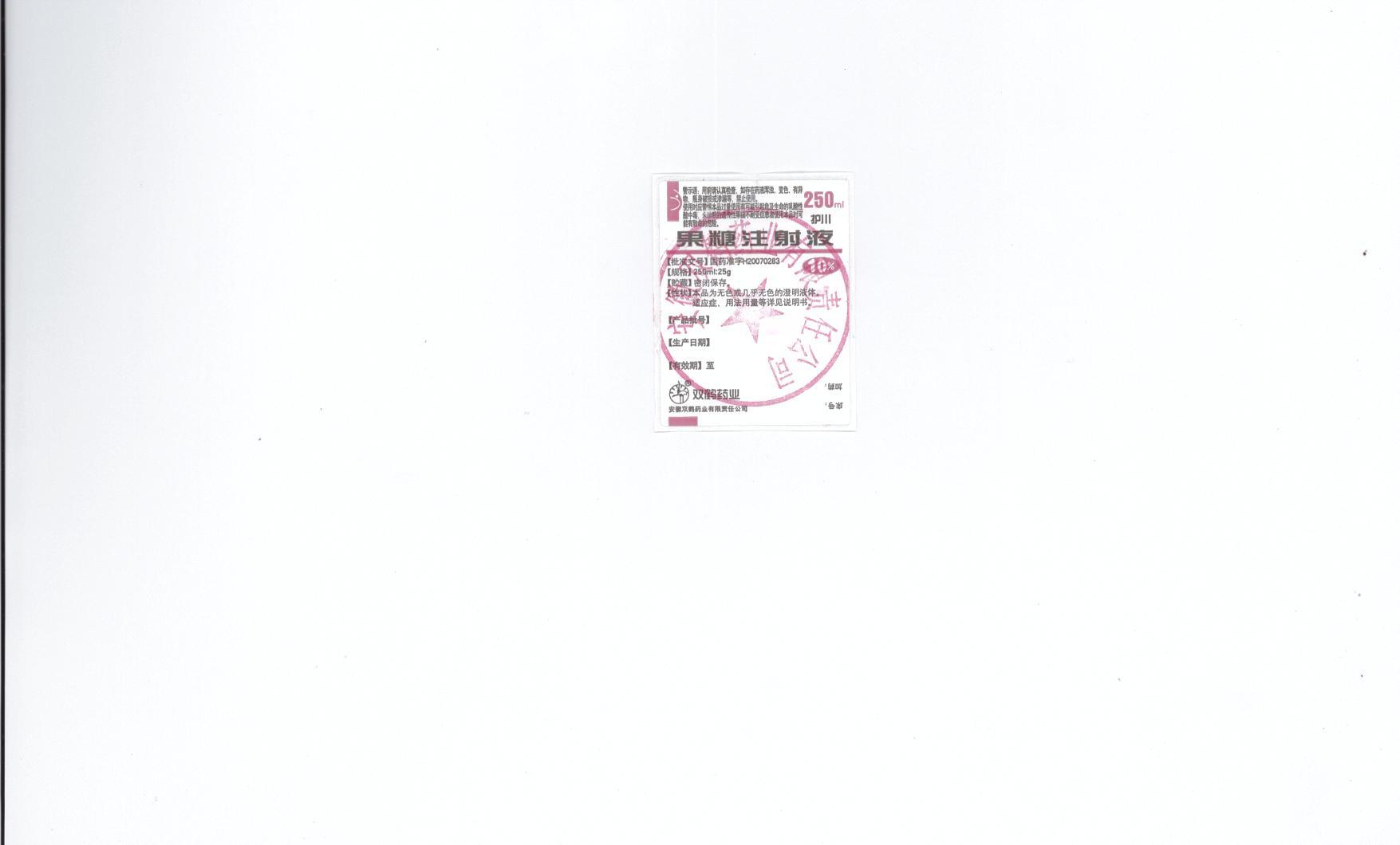 果糖注射液250ml:25g (塑瓶)(安徽双鹤)