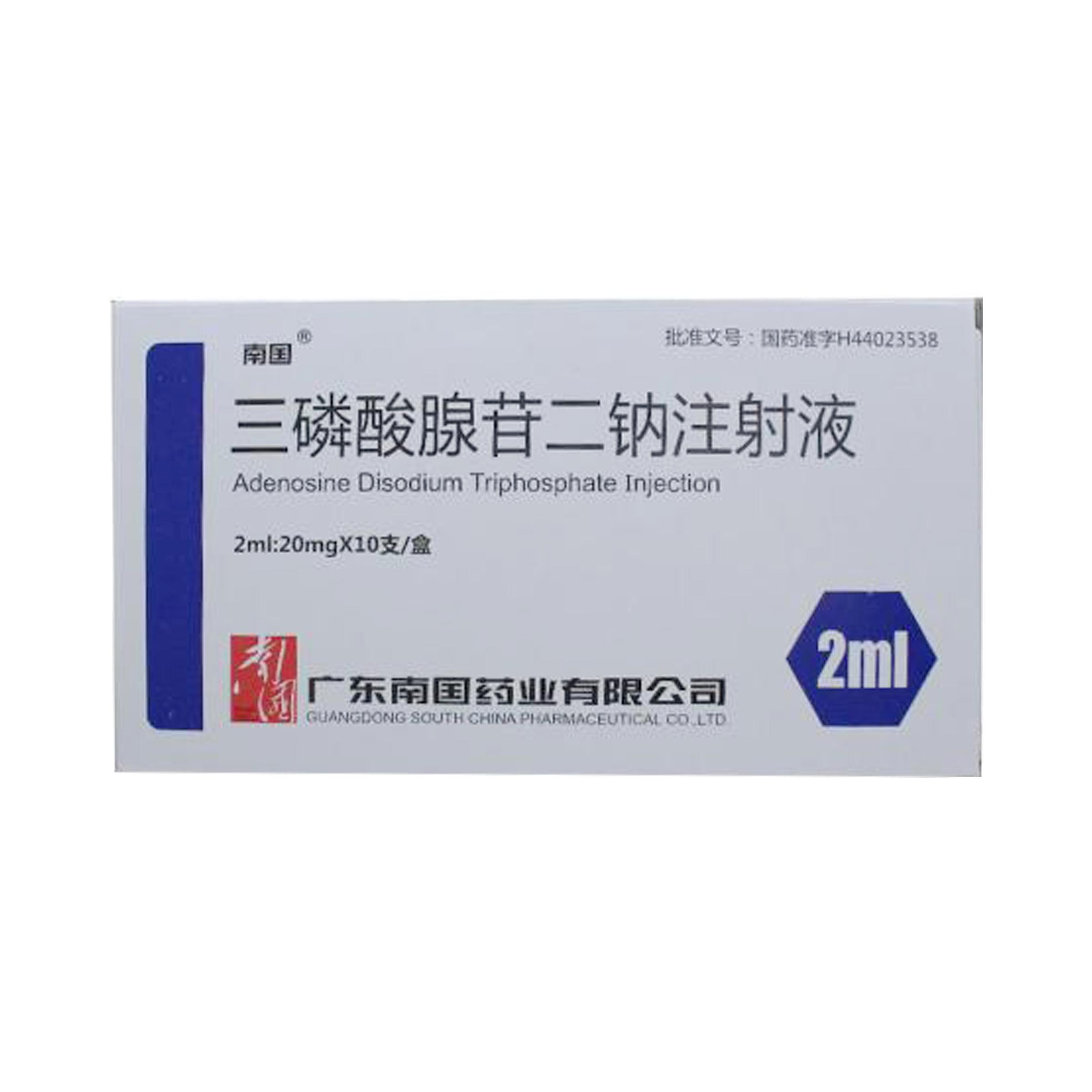三磷酸腺苷二钠注射液2ml:20mg*10支(广东南国)