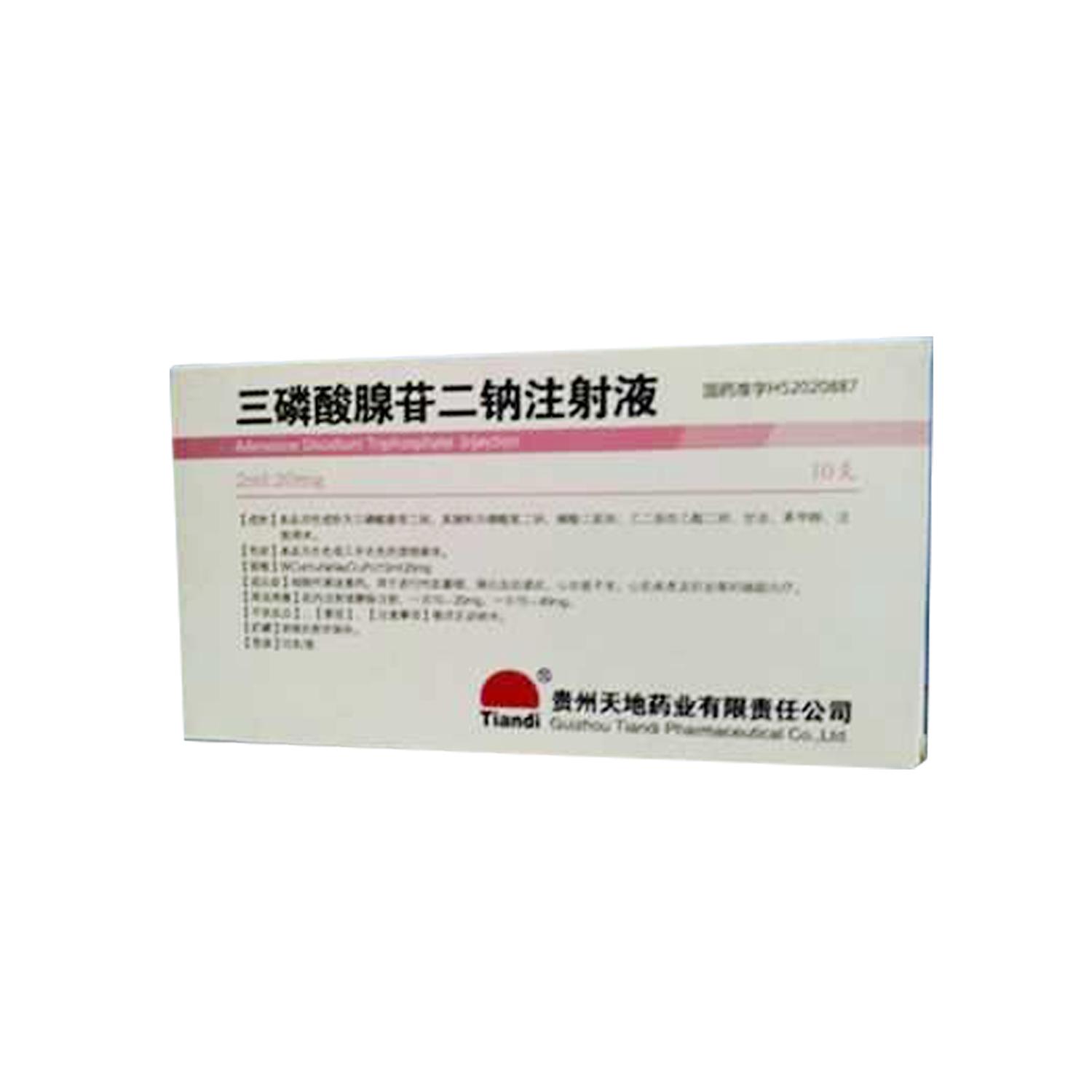 三磷酸腺苷二钠注射液2ml:20mg*10支(贵州天地)